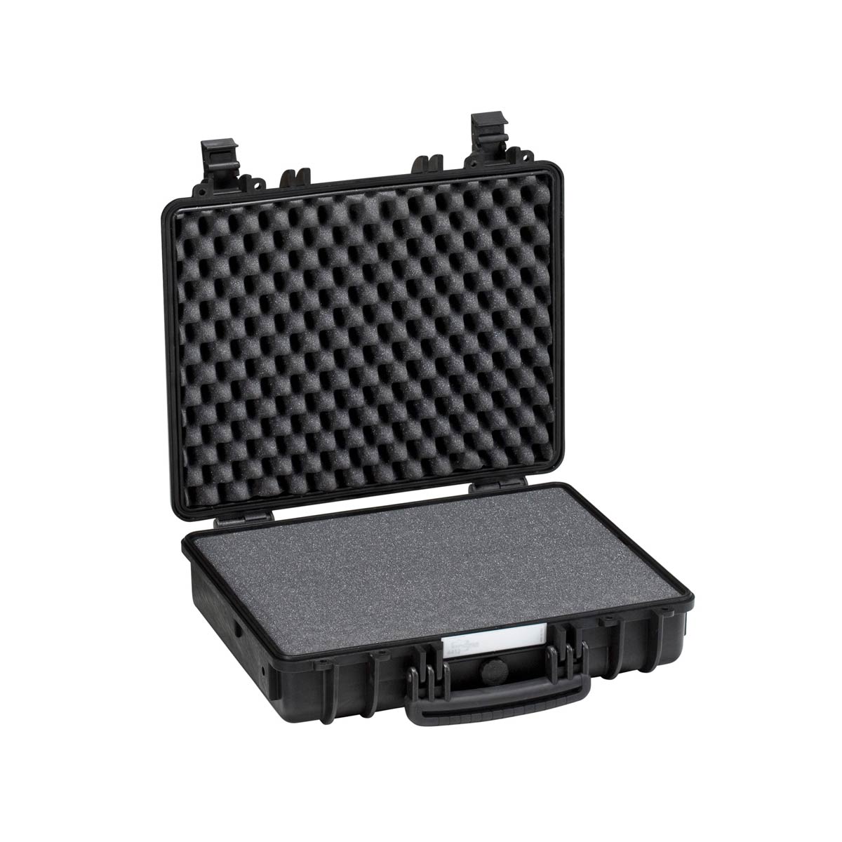Cette valise, extrêmement résistante et étanche, permet le rangement et le transport de petit matériel fragile. Elle est garnie de blocs de mousse prédécoupée. Le façonnage s’effectue manuellement par arrachage des bâtonnets de mousse.