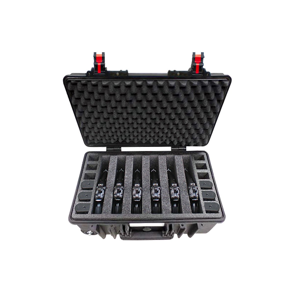 - Version avec de la mousse découpée pour 6 pistolets et 12 chargeurs